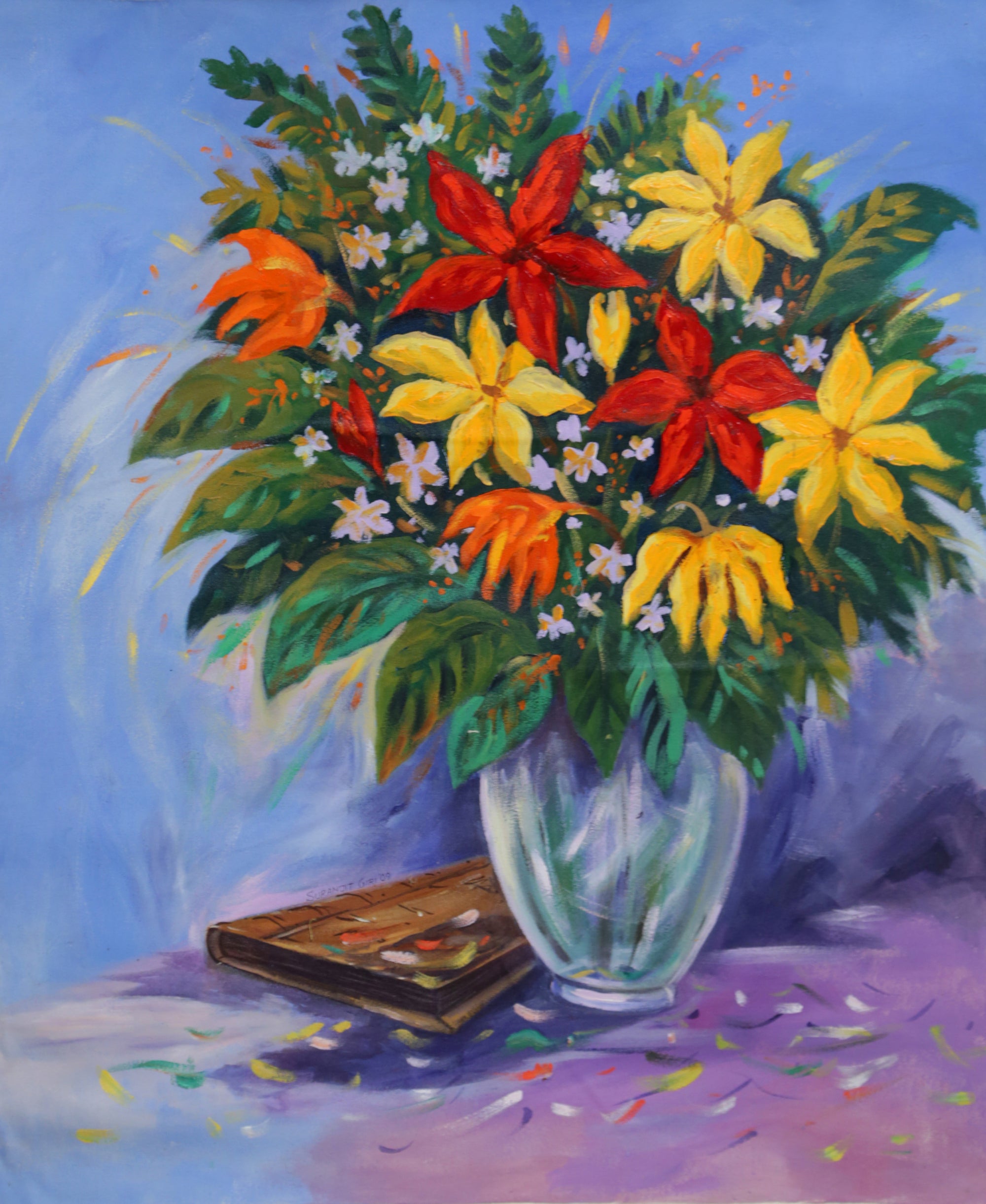 FLOWERS by Suranjit Giri | Oil painting - Canvas artwork