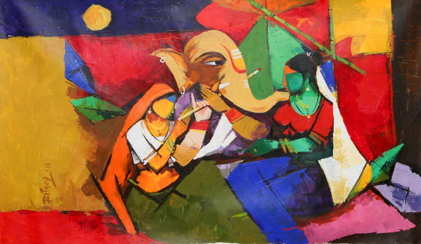 GANESHA PLAYING THE FLUTE by P.R Rathod | Acrylic art - Canvas Home decor